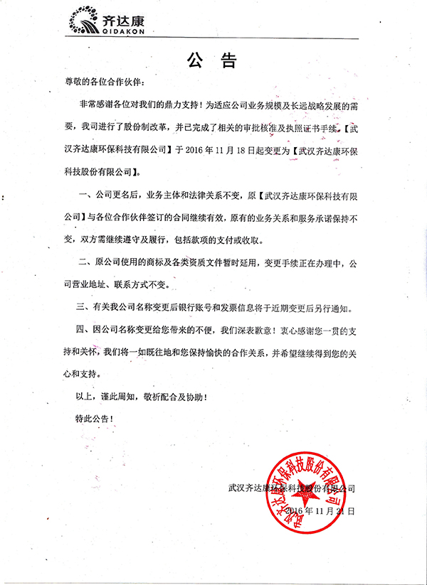 武漢齊達康環(huán)保科技股份有限公司 版權(quán)所有信息