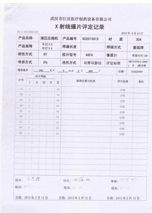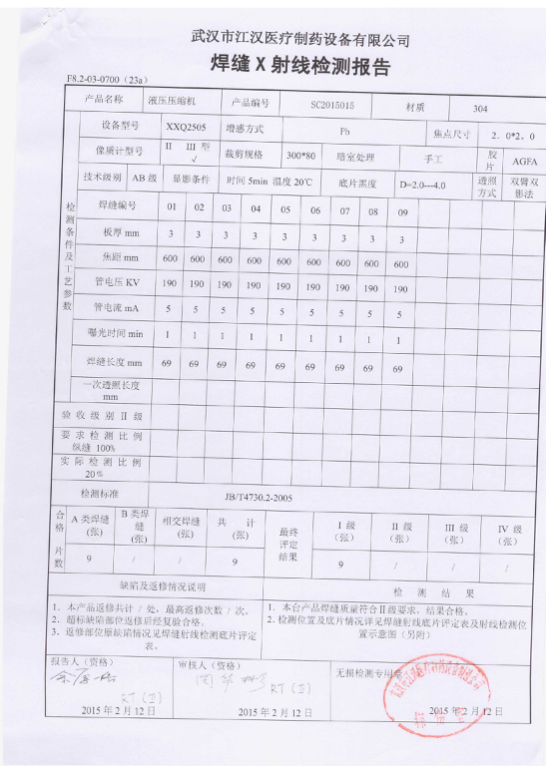 1.管道無損檢測 所有工藝氣管道焊接接口均做射線探傷檢測。