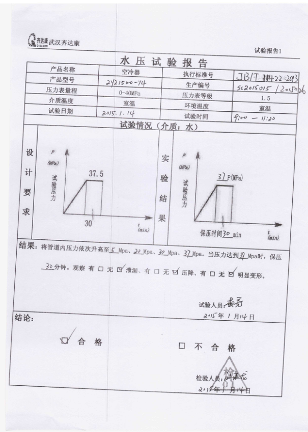 2、水壓試驗(yàn) 工藝氣管道焊接完畢后均做37.5MPa水壓試驗(yàn),水壓試驗(yàn)合格后才允許裝配。
