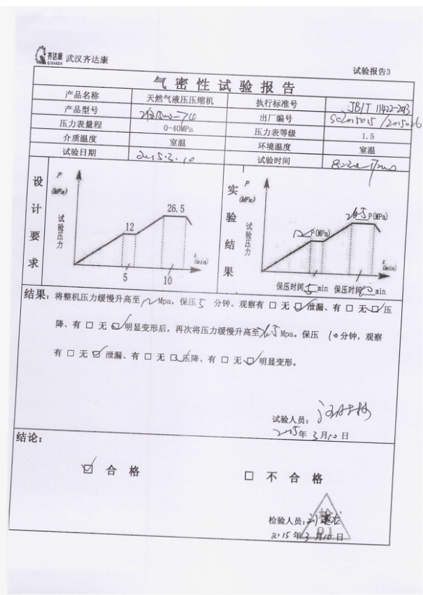 為保障產(chǎn)品質(zhì)量性能,齊達(dá)康公司的天然氣液壓壓縮機(jī)設(shè)備在出廠前都會做一個檢測四個試驗(yàn)。