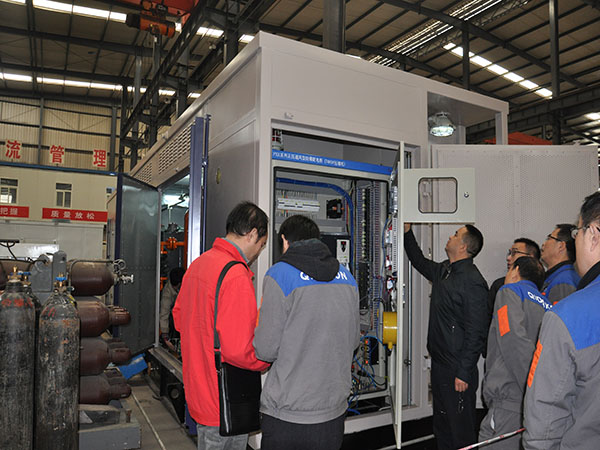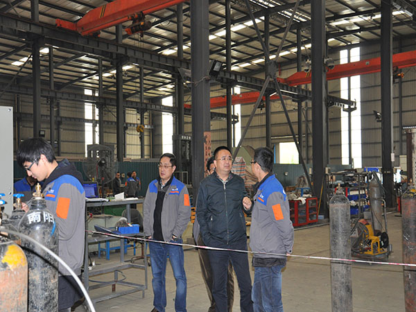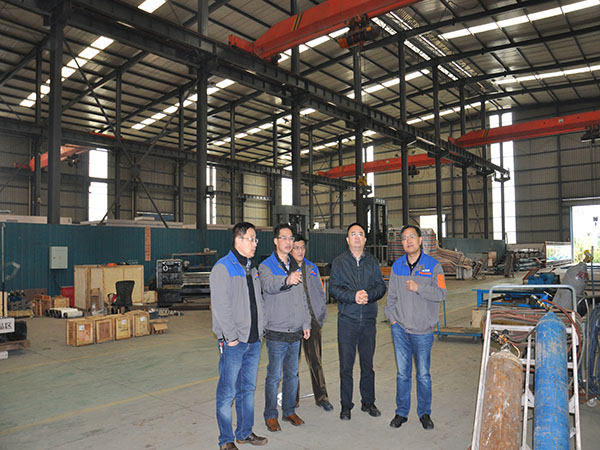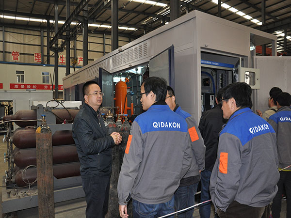 2016年11月8日中石化石油機(jī)械制造股份有限公司江鉆武漢天然氣分公司常務(wù)副總張慶一行蒞臨齊達(dá)康參觀(guān)考察。圖為客戶(hù)在車(chē)間參觀(guān)他們訂購(gòu)的一臺(tái)井口氣回收撬。