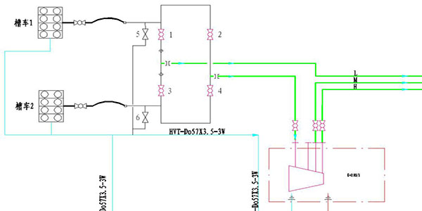 如果液壓活塞式子站設(shè)備性能可靠,加氣站產(chǎn)量已達(dá)到設(shè)計(jì)規(guī)模上限,已無法滿足生產(chǎn)需求,但加氣站又想適當(dāng)提高產(chǎn)量且不增加壓縮設(shè)備的投入,則可以考慮通過升級(jí)加氣站工藝流程來提高設(shè)備產(chǎn)量。在此,可以推薦一種我公司獨(dú)創(chuàng)的雙槽車卸氣工藝流程方案。