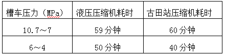 當(dāng)加氣站遇到長時(shí)間的加氣高峰時(shí),加氣能力會(huì)有所下降?,F(xiàn)場統(tǒng)計(jì)數(shù)據(jù)為:在槽車壓力5MPa以下至3.8MPa之間,如出現(xiàn)加氣高峰,在高壓井,中壓井都處于滿壓時(shí),能夠保持30分鐘6把搶加氣;如果高峰時(shí)間再延長,此時(shí)高壓井為21MPa,中壓井在16MPa以下,這時(shí)會(huì)出現(xiàn)加氣能力下降,隨著槽車壓力不斷下降,加氣能力由6把槍慢慢變?yōu)?把、4把槍加氣,直到槽車為3.8MPa時(shí)壓縮機(jī)停機(jī)。以下是兩種壓縮機(jī)加氣能力的比較: